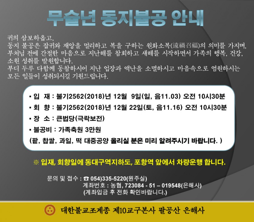 무술년 동지불공 안내
