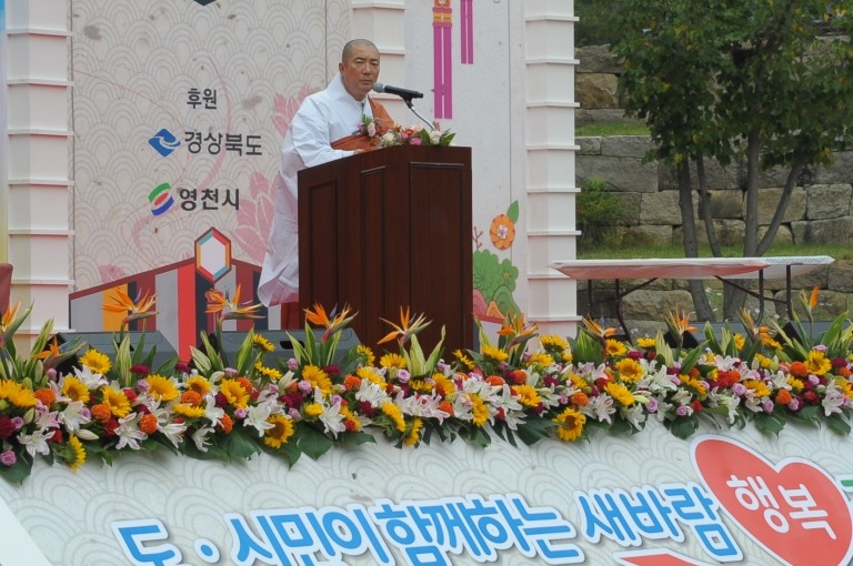 제10교구본사 은해사(주지 돈관스님)는 10월5일 경내 템플스테이관 앞 대 광장에 설치된 특별무대에서 ‘창건 1210주년 은해사 개산대재와 보살계 수계식을 봉행하고 이어 도.시민이 함께하는 새바람 행복 경북음악회를 봉행했다.
