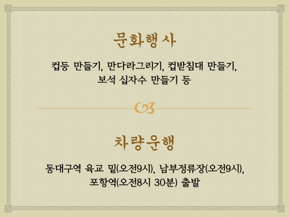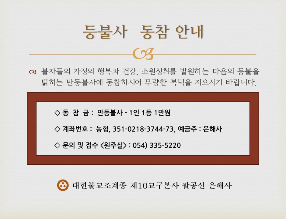 문의 종무소 : 054-335-3318 템플스테이 : 054-335-3308 원주실 : 054-335-5220 성보박물관 : 054-335-6991 수림장 : 054-335-0566